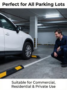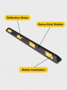 This 2M rubber wheel stopper is made of high-quality crush-resistant rubber, ensuring long-lasting use in any weather. Equipped with bright reflective strips, it provides excellent visibility at night to prevent collisions. The heavy-duty design resists deformation from cars, trucks, and buses. Pre-installed holes allow for quick and easy permanent mounting. Perfect for parking lots, garages, and industrial areas.